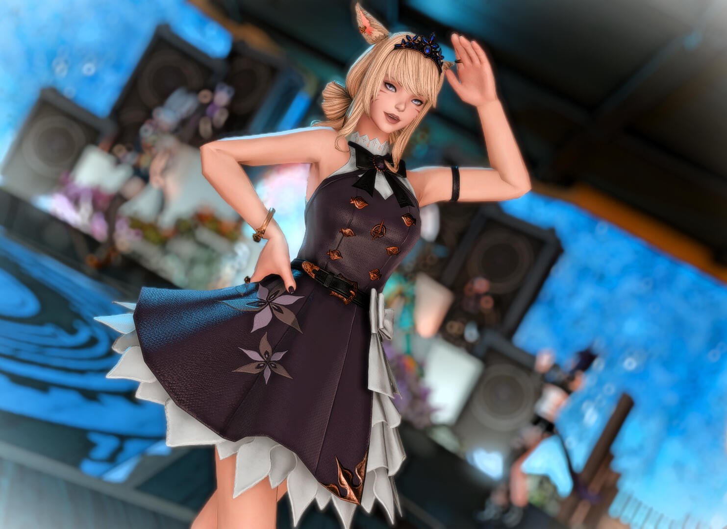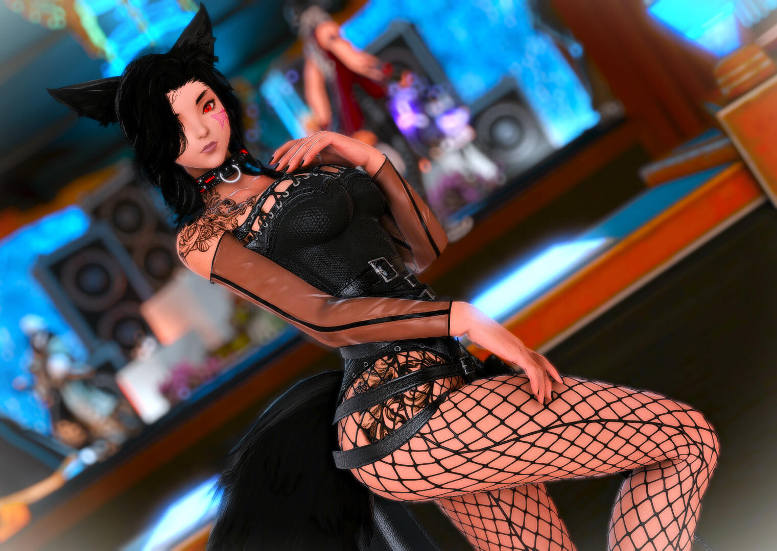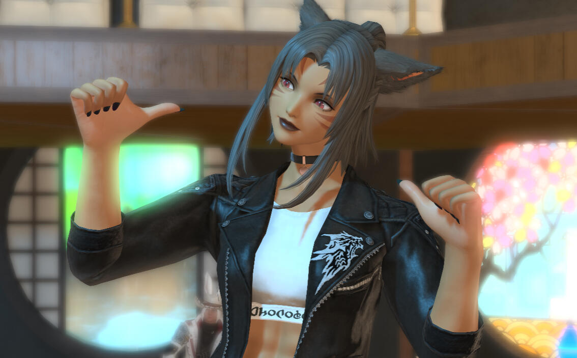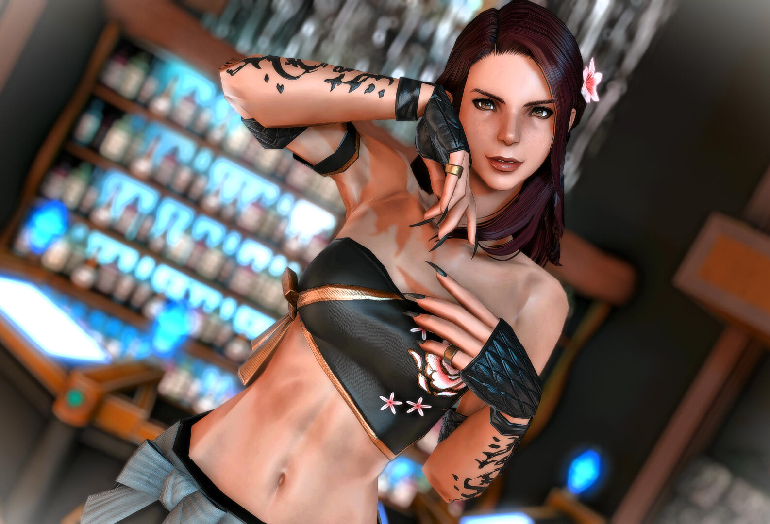 Amaterasu is a bit shy but will talk to just about anyone, she loves dancing when the bar is quiet and enjoys making small talk with the customers