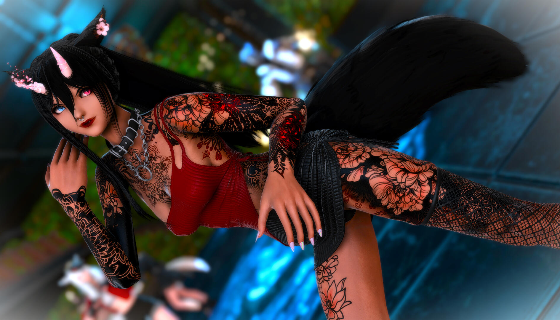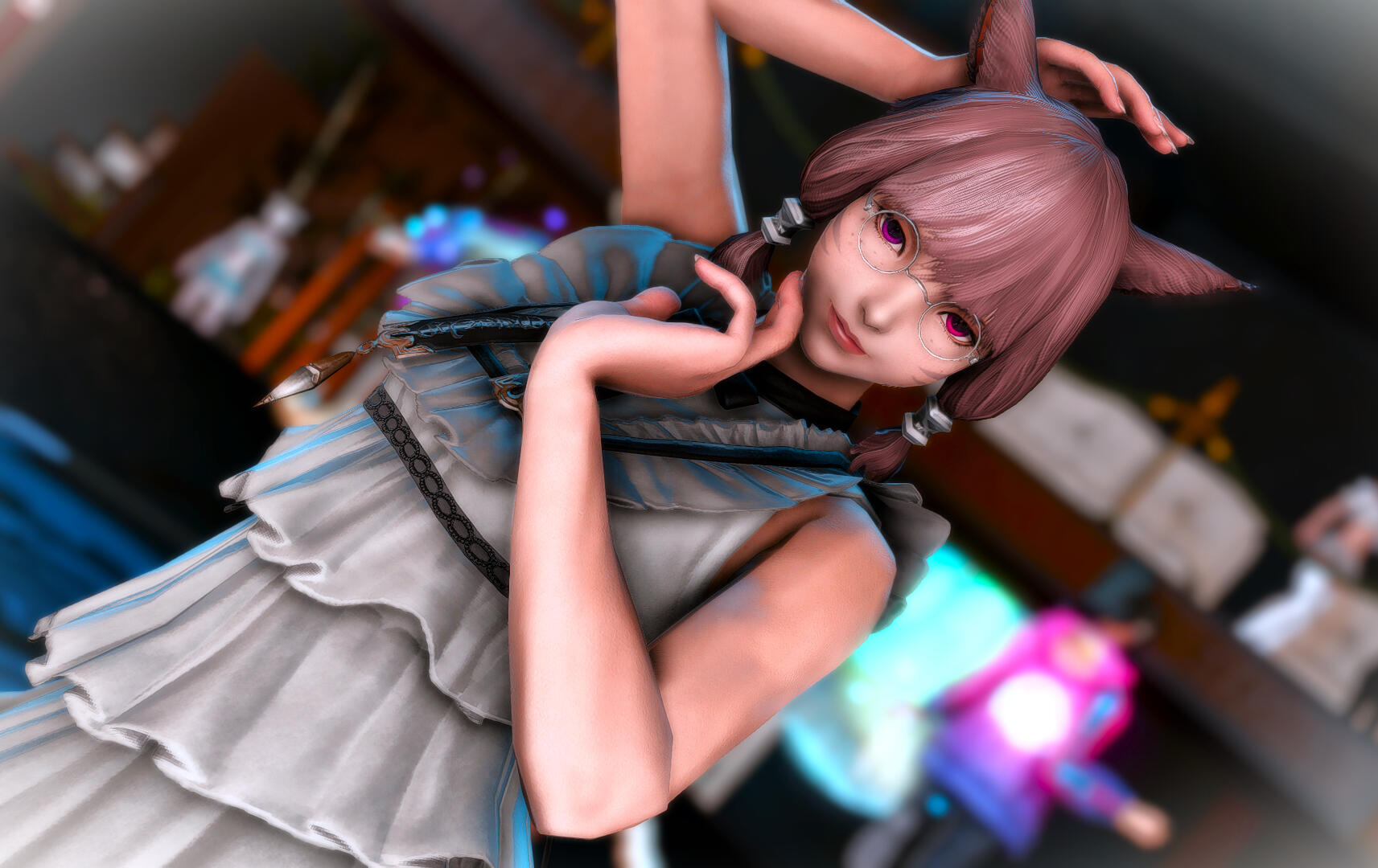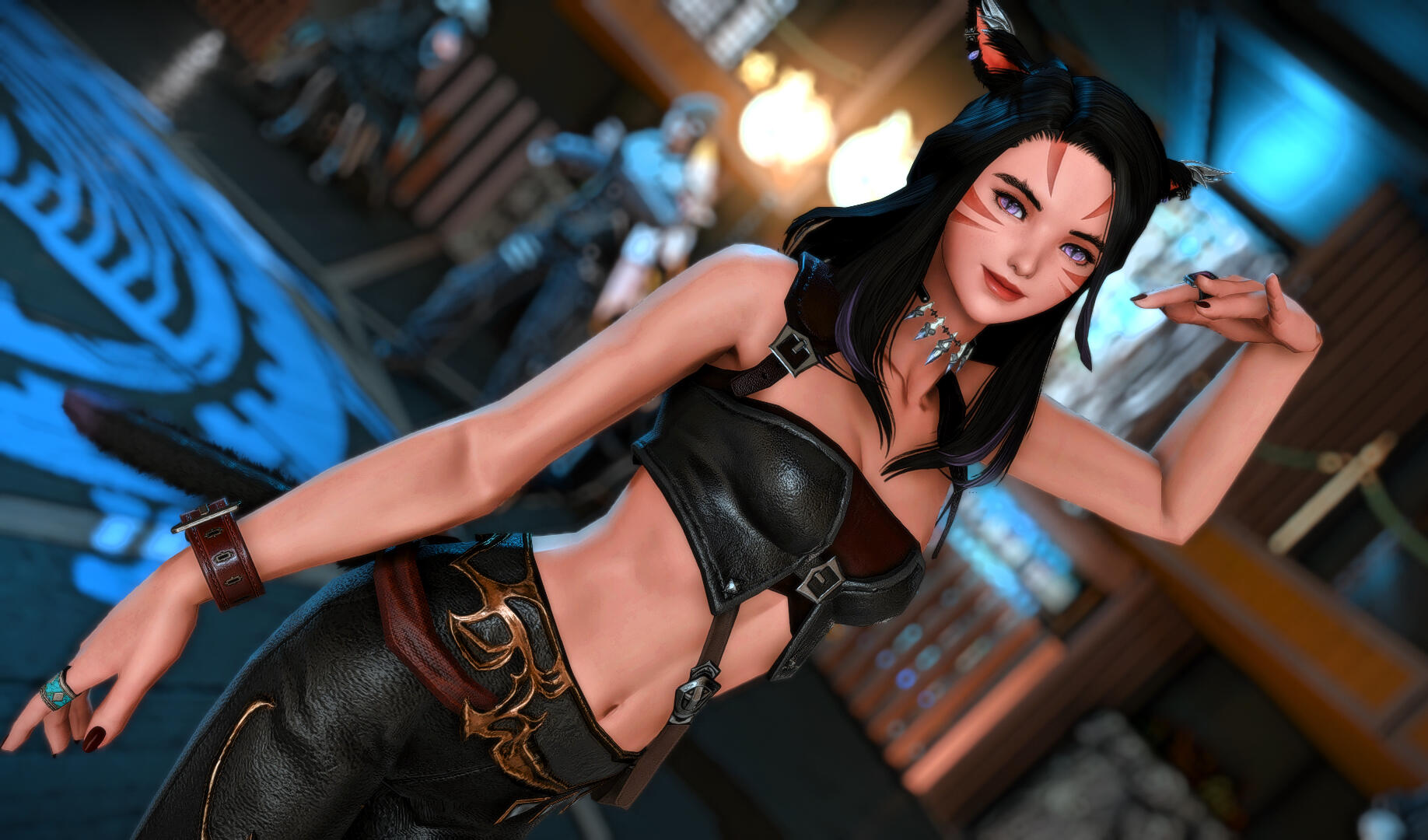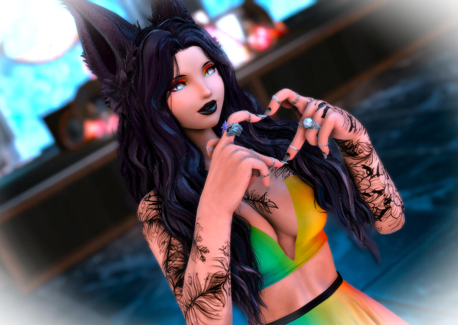 Amaterasu is a bit shy but will talk to just about anyone, she loves dancing when the bar is quiet and enjoys making small talk with the customers