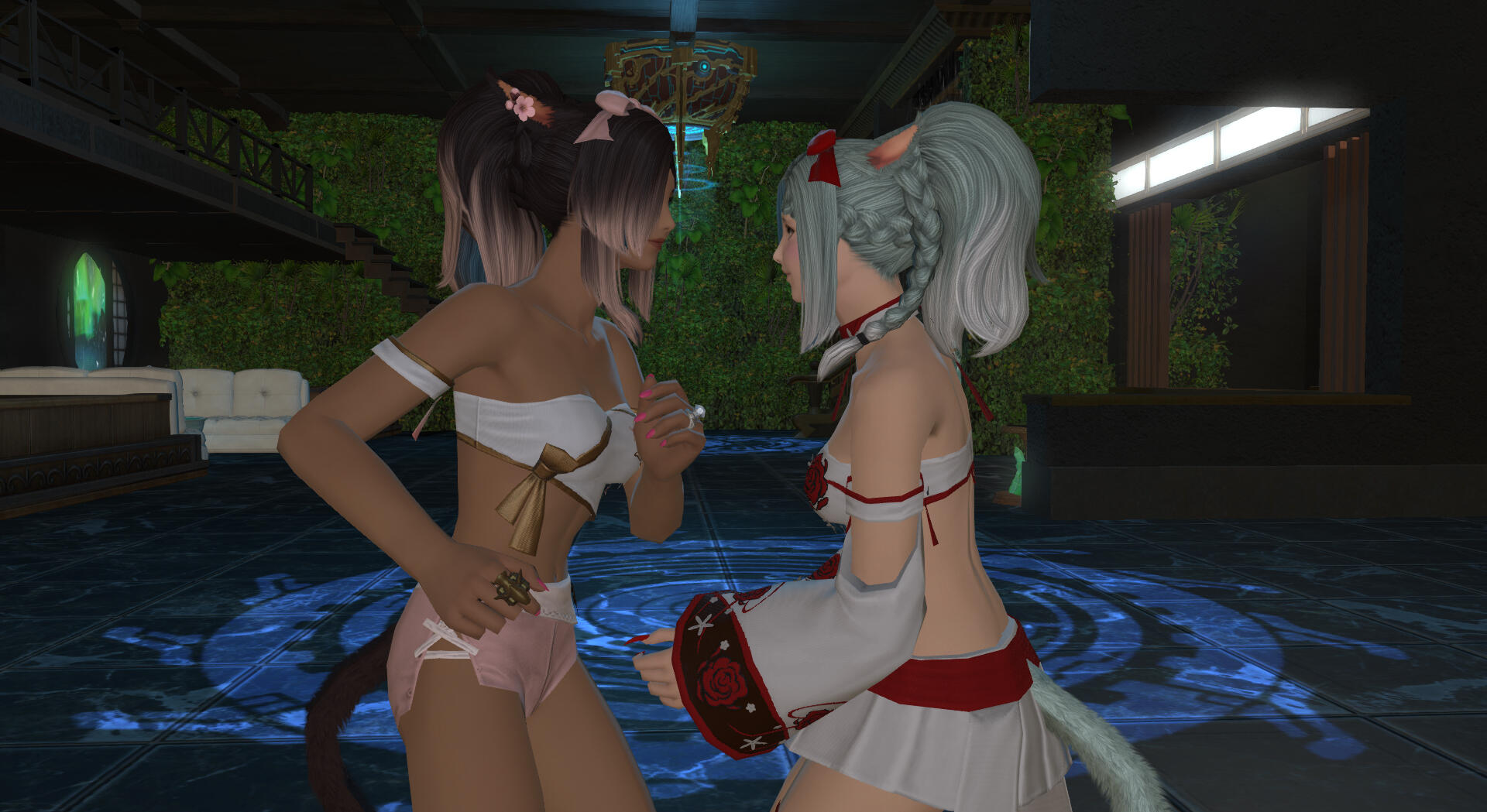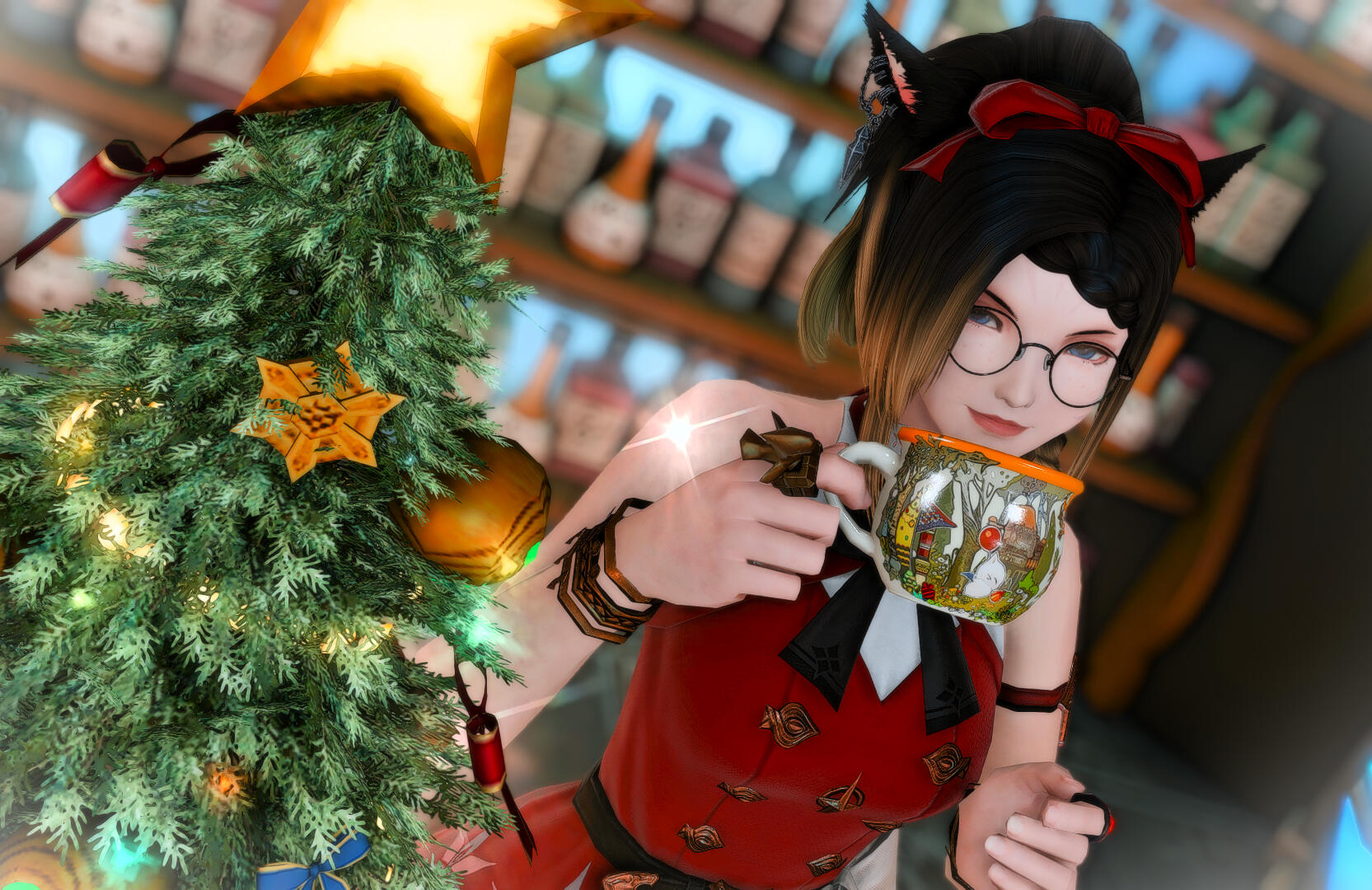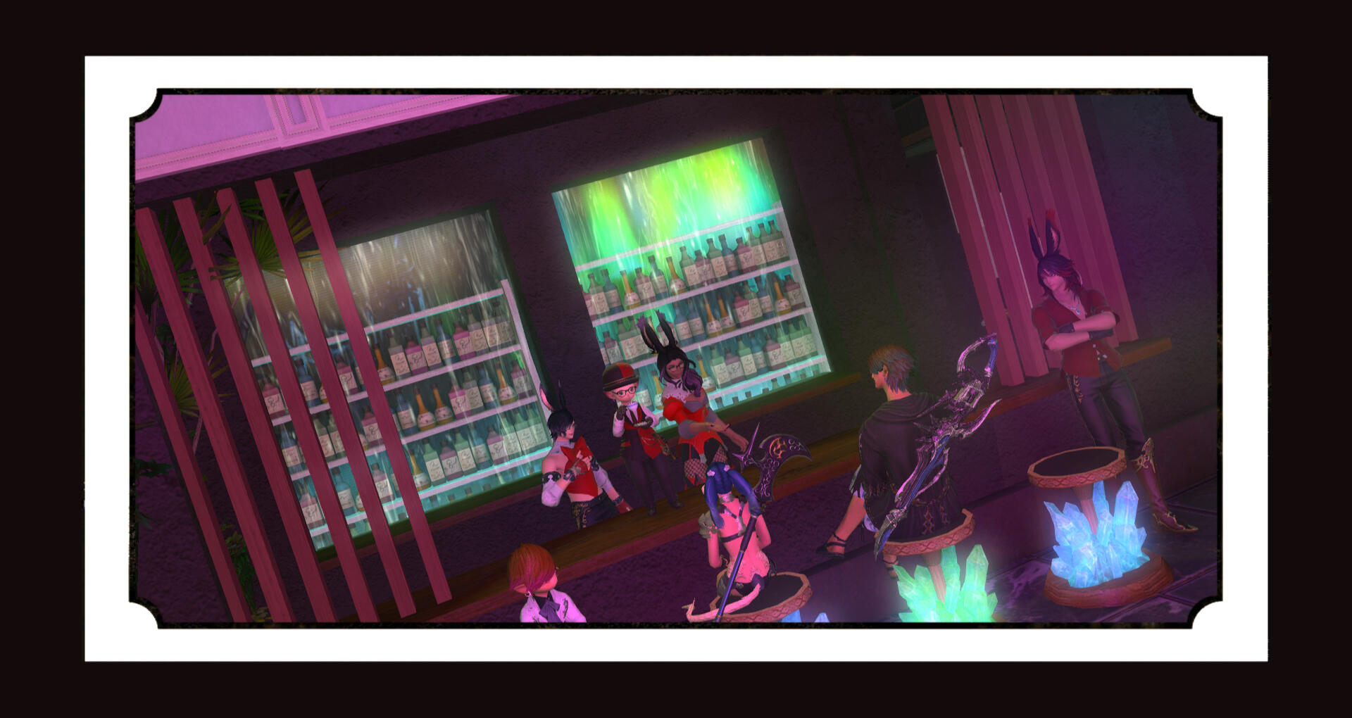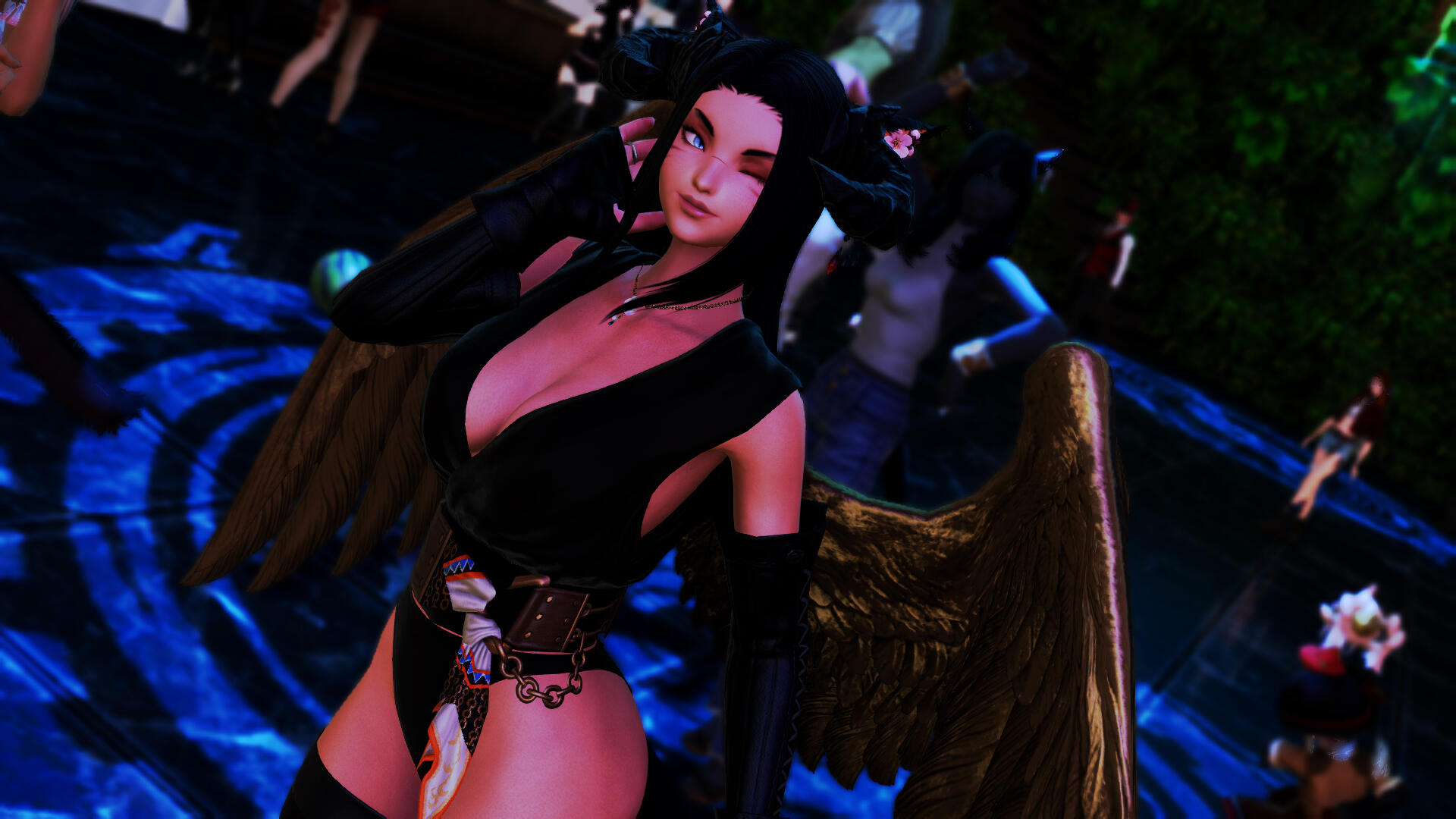 Amaterasu is a bit shy but will talk to just about anyone, she loves dancing when the bar is quiet and enjoys making small talk with the customers