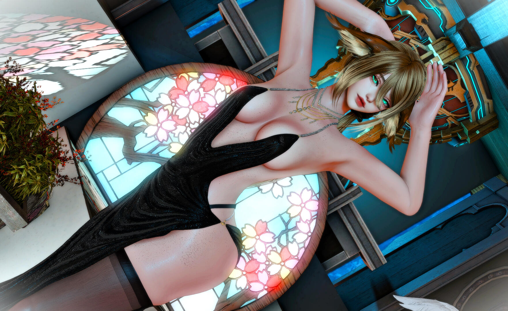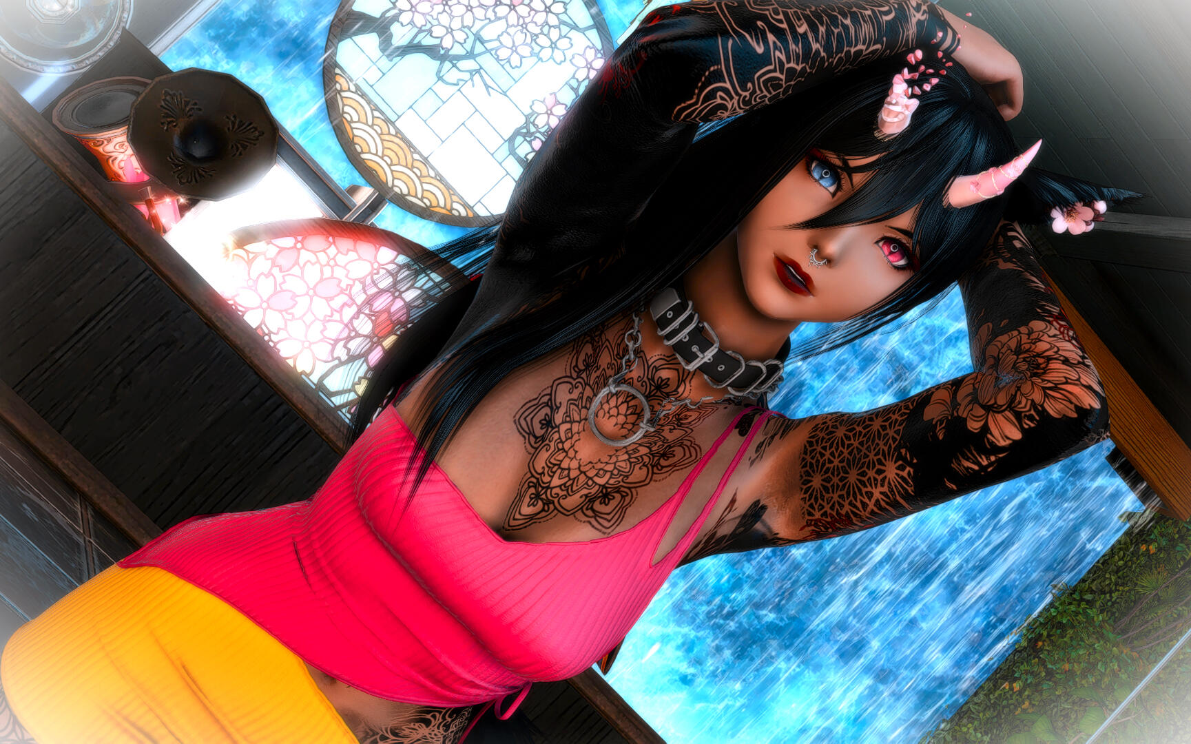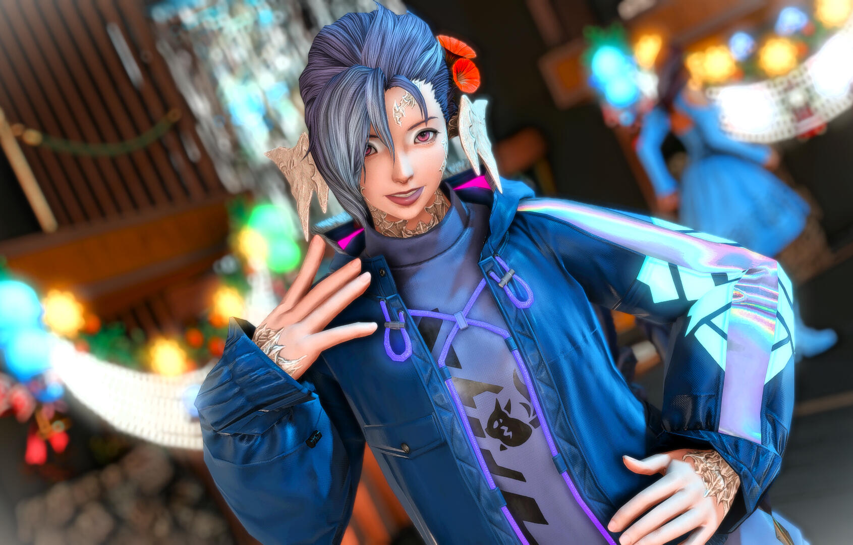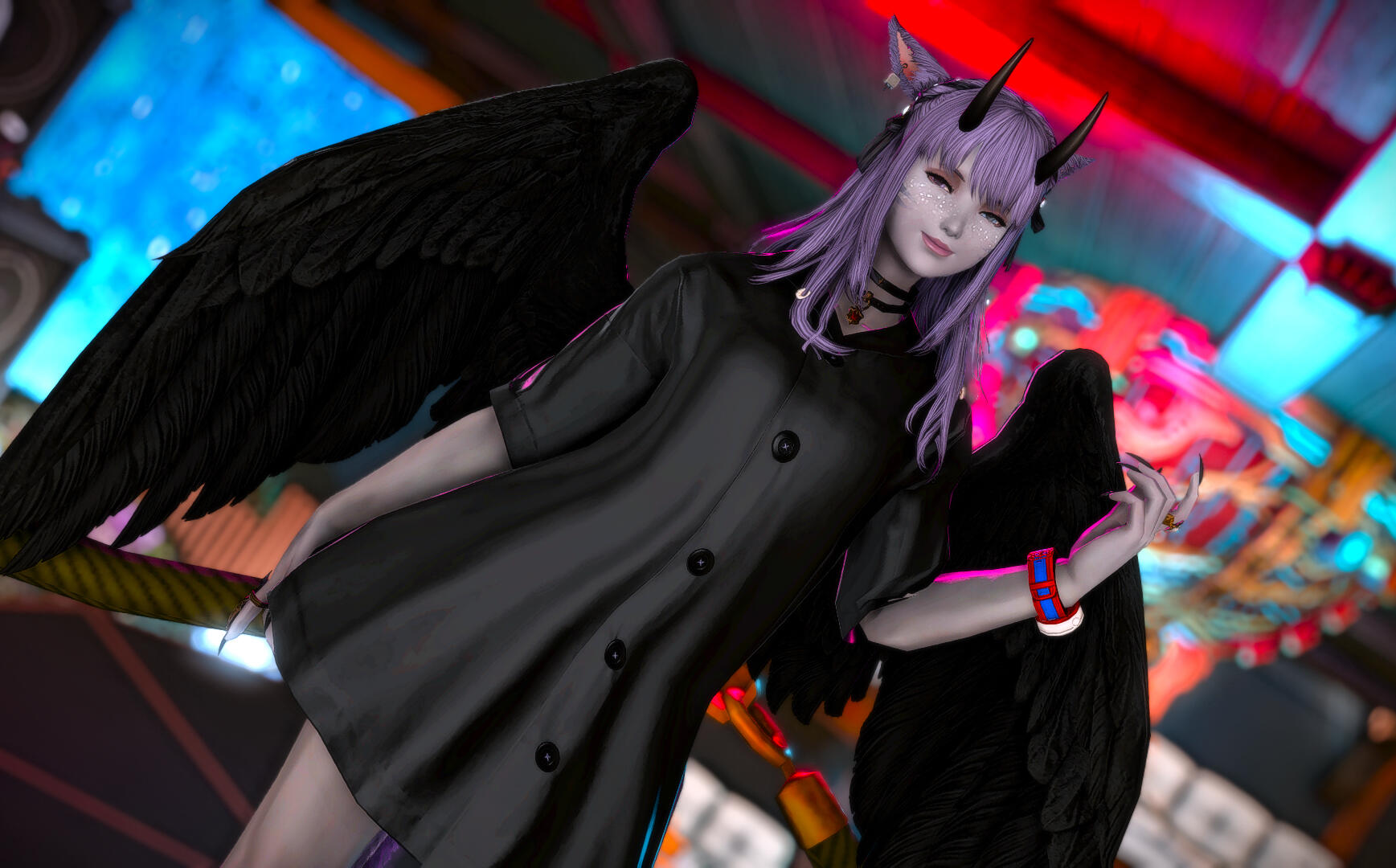 Amaterasu is a bit shy but will talk to just about anyone, she loves dancing when the bar is quiet and enjoys making small talk with the customers